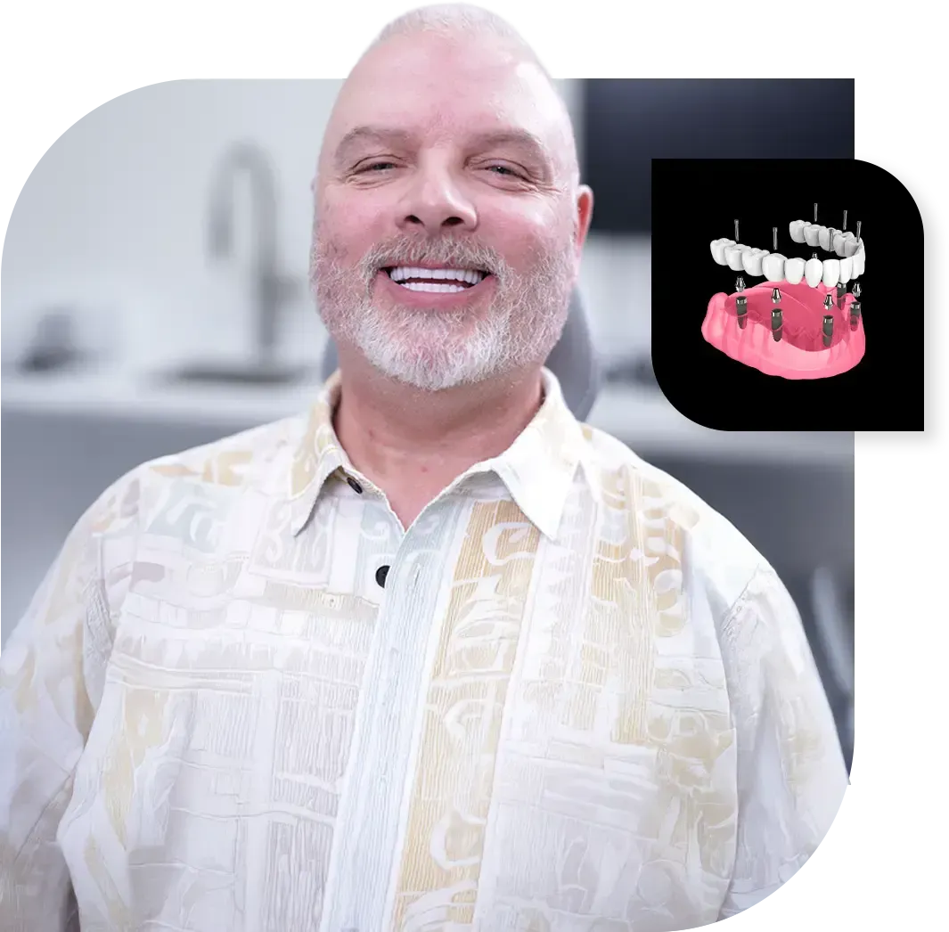 All-on-X® can be a great upgrade. Many people switch from dentures to implants for more stability and comfort. We can evaluate if this switch is right for you.